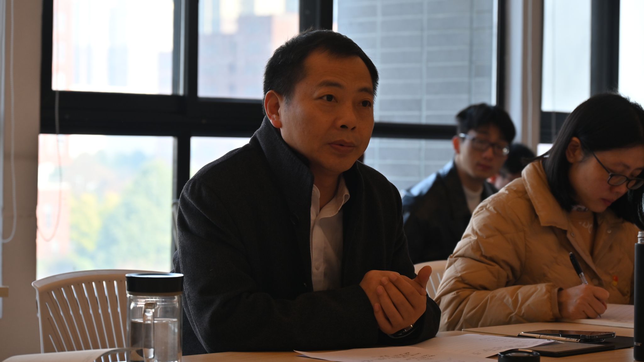 各支部书记述职结束后,学院党委书记郑简平同志作总结讲话。他指出,述职评议是对过去一年党建工作的全面复盘,更是凝聚共识、共谋发展的重要契机。他强调,全院各党支部要深入践行“以高质量党建引领高等教育高质量发展”的要求,教工党支部要聚焦理论学习深化、教学科研提质、师德师风建设,将党组织优势转化为学科发展优势;学生支部要结合年级层次与专业特色,把党员先锋模范作用融入学习科研、实践创新各方面。他鼓励全体党务工作者拓宽工作视野、创新工作方法,讲好学科发展故事、科研攻坚故事、党员先锋故事,进一步激发全院师生的责任感与使命感,推动党建工作与学院事业发展同频共振、互促共进。